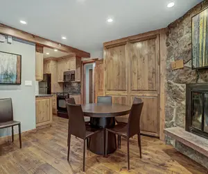 In the deluxe open-concept LIVING AREA curl up on the comfortable sectional sofa and warm your toes in front of the majestic wood-burning fireplace. Watch a great movie on the flat screen TV. There is a dining table with seating for 6 (additional chairs available upon request).
